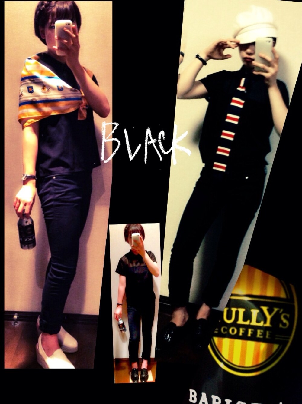 タリーズのブラック缶コーヒー中毒者です(笑) 全身ブラックにワンポイントスタイルがモードな感じですごく好きです〜💃投稿! でも夏に黒ずくめは、コナンくんの敵でしょ… ってなるので(笑) マリン意識!⚓️⚓️できてるかな…? 真ん中のノーマルタイプ から 左 ちょいクールウーマン風 withスカーフ と、 右 …ライアン!(笑)坊ちゃん風withネクタイ! ライアンは映画ハイスクールミュージカルのシャーペイの弟です(笑)参考にしてみました(笑) ということで ライアン役のルーカス・グラビール氏が歌ってるノリノリな 🚲🚲Bop To The Top〜♩ でオトナサマーに!…なれっ!!(笑)