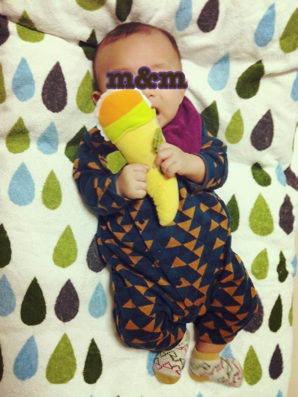 m&mのロンパース「richesse by CELEC 幾何学柄前開きカバーオール」を使ったコーディネート