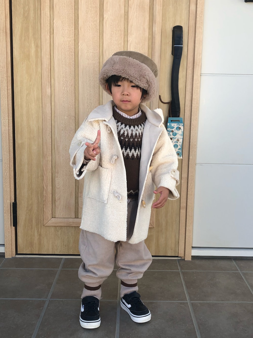 aoochan.のスニーカー「VANS ヴァンズ FALKEN(15-22) V3830K SYN BLK/WHT」を使ったコーディネート