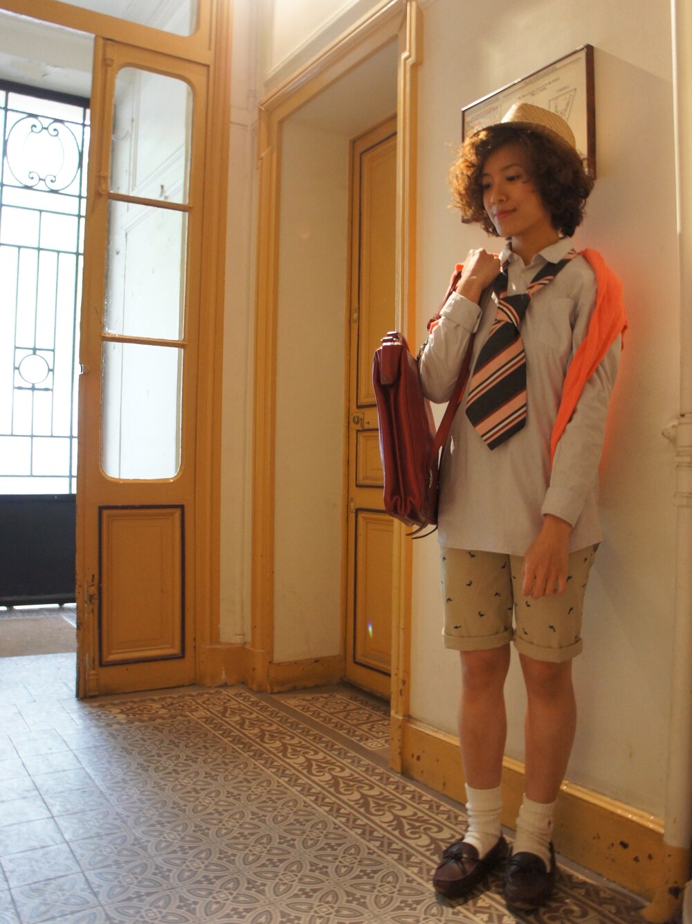 帽子:monoprix (フランスのスーパー ) シャツ:monoprix, 14歳の子供用 (for boys) ネックタイ:古着 カーディガン:pimkie ベスト:日本の古着屋 ショートパンツ:monoprix, 14歳の子供用 (for boys) 靴下:Ralph Lauren 靴:Minnetonka 昨日のスタイルのつつきです。♪ ♪ 換了帽子跟背心,持續昨天的style♪ ♪