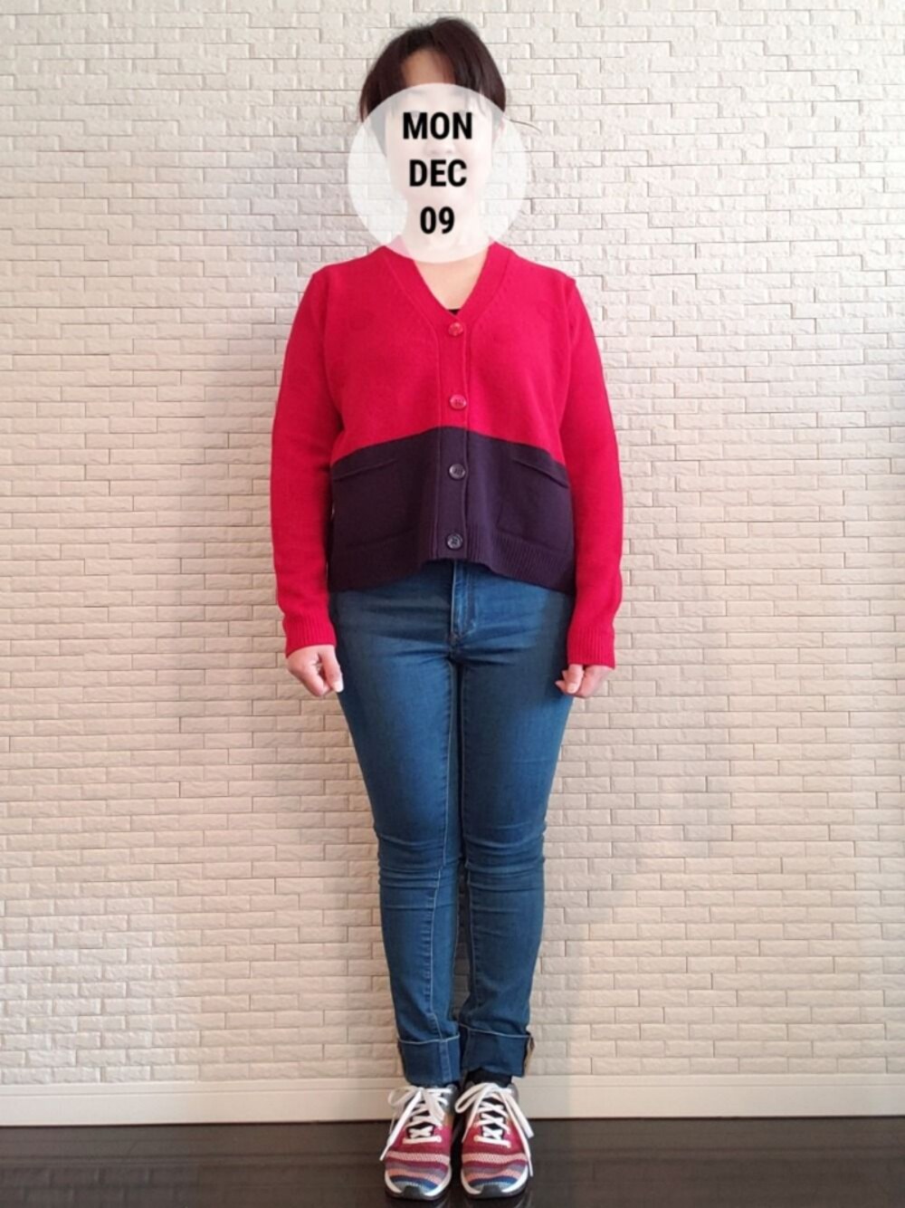 バイカラー大好きだから、ついつい買っちゃう。 赤×紫 ニットの地模様は水玉なんです!!