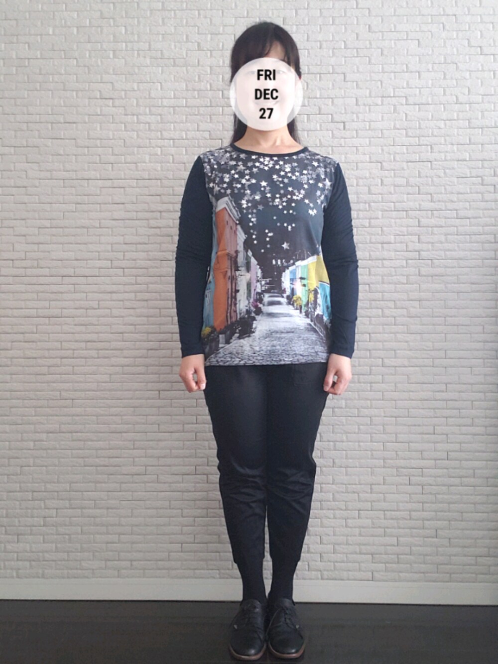今年の仕事は今日で終わり!! この絵柄がきれいでシンプルコーデだけど、きれいめに変身させれます。
