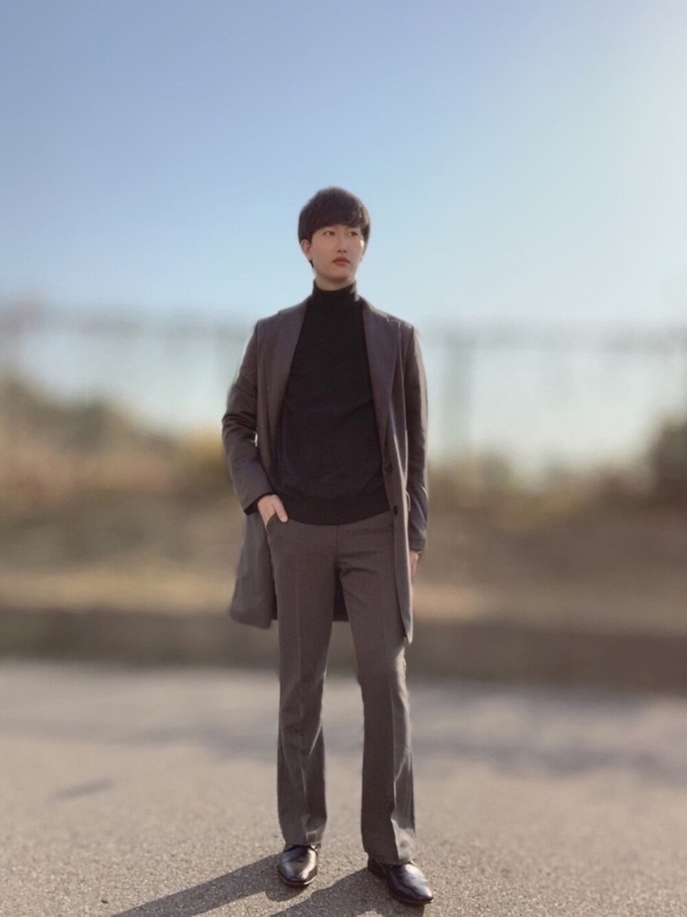 今回は、チェスターコートを使ったモノトーンのセットアップコーデです! ロング丈のアウター×フレアパンツの相性◎ 着用のチェスターコートは、生地が薄めなので、春に着ても快適に過ごせます😊