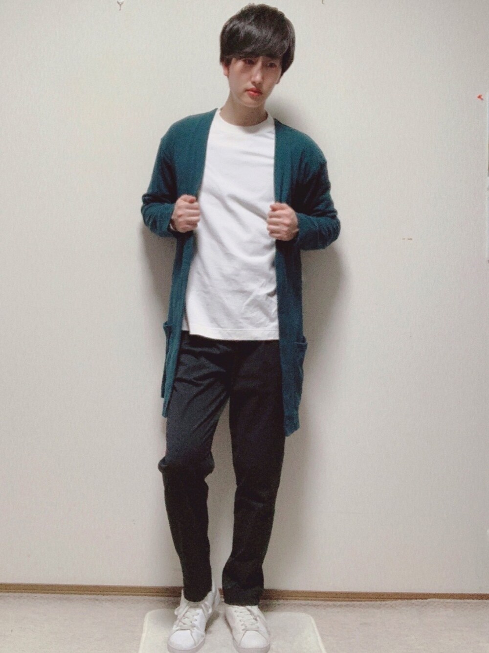 白Tに緑のロングカーディガン羽織った無難なコーデです カーディガンあまり着ないので、ちょっとしたイメチェンだと思ってます(笑) 今日はK-1が楽しみ^ ^