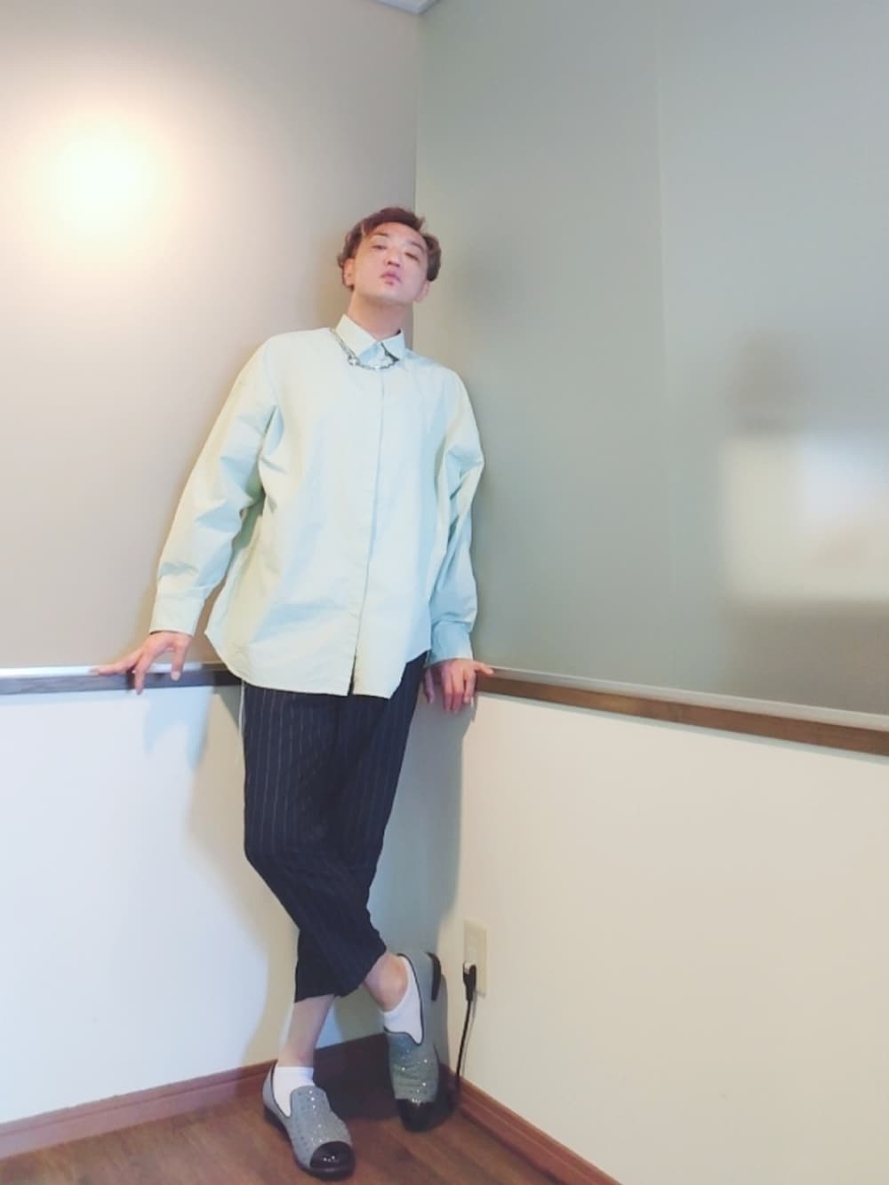 P3のネックレス「CASPER JOHN AIVER オーロラコーティングチェーンネックレス」を使ったコーディネート