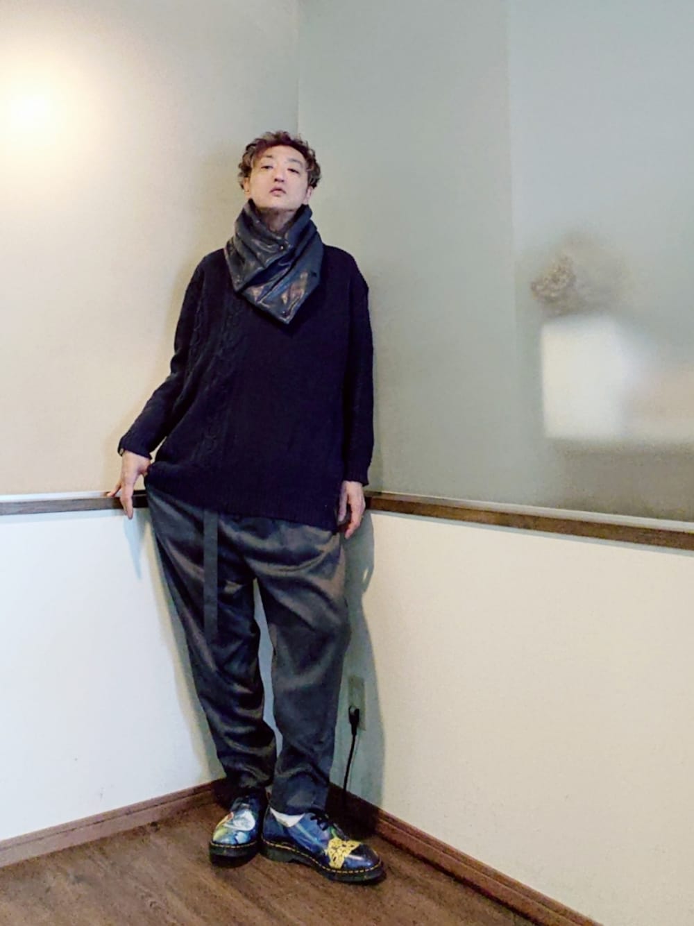 ご覧頂きありがとうございます✨ 沢山のいいね 素敵なフォルダ 貴重なフォロー 心より感謝申し上げます🛐 ネイビーのビッグシルエットニット ネイビーのエコレザーのネックウォーマー グレーのワイドシルエットでサルエルなスラックス ブルーのDr.Martens シンプルなビッグシルエットニットコーデ 意外と好きです 今の季節は着るもの困りますがネックウォーマーは大助かりです😊