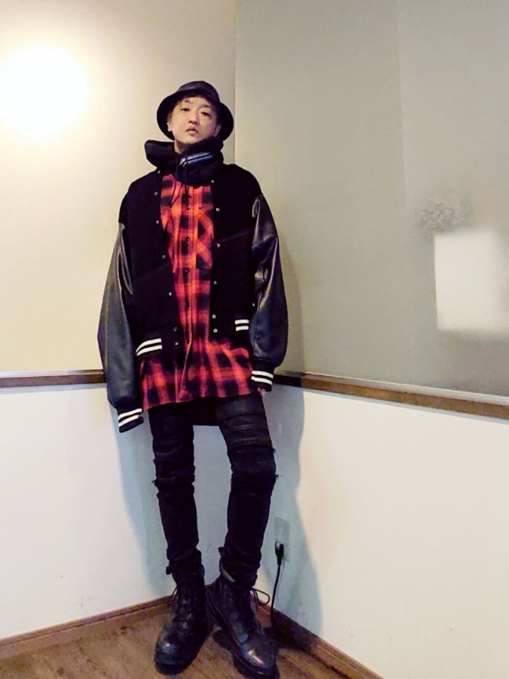 ご覧頂きありがとうございます 沢山のいいね 素敵なフォルダイン 貴重なフォロー 心より感謝申し上げます✨ 黒のエコレザーのバケハ 黒のネックウォーマー 赤×黒のビッグシルエットのチェックシャツ 黒のビッグシルエットスタジャン 黒の加工スキニー 黒のブーツタイプのハイカットスニーカー 今日は雨がすごいので足元はこの子 スポーツライクなストリートスタイル ビッグシルエットのスタジャンは袖がエコレザーなのが◎