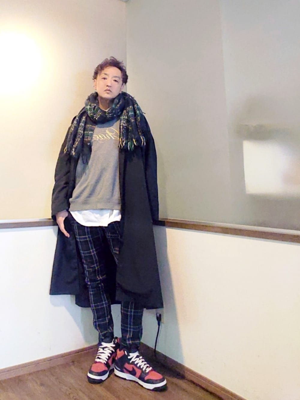 ご覧頂きありがとうございます 沢山のいいね 素敵なフォルダイン 貴重なフォロー 心より感謝申し上げます✨ シルバーのスタッズイヤーカフ 白のビッグシルエットシャツ グレーのスウェット グリーンチェックのストール 黒のビッグシルエットコート グリーンチェックのZIPがアクセントのスキニーパンツ 赤のハイカットスニーカー カジュアルデートで嫌われないくらいのソフト過ぎるパンクコーデ(笑) 下心ありありですね(笑) でもこれくらいなら受け入れてもらえるでしょ?(笑) 因みにデートの予定はありません(笑)