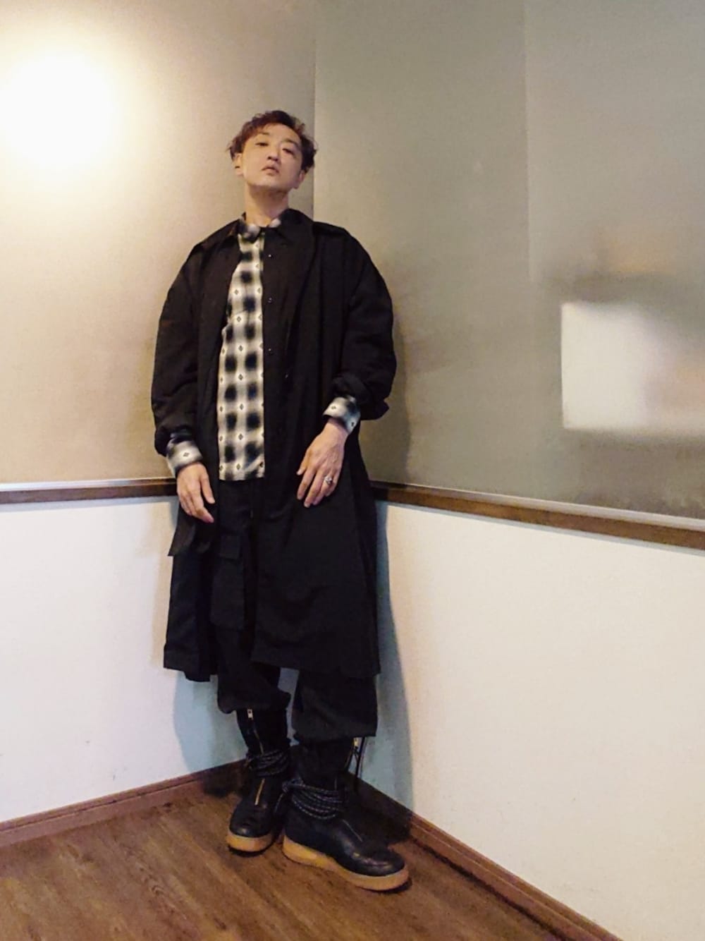 ご覧頂きありがとうございます 沢山のいいね 素敵なフォルダイン 貴重なフォロー 心より感謝申し上げます 白×黒の切り替えチェックシャツ 黒のビッグシルエットウェスタンシャツ 黒のステンカラーコート 黒のビッグシルエットカーゴパンツ 黒のスニーカーブーツ ビッグシルエットのウェスタンとカーゴはセットアップになります アウターの袖を捲って軽快な印象に スニーカーブーツはAF-1の派生モデル巻き付くコードが○ 普通のモノトーンのビッグシルエットのレイヤードスタイル シンプル過ぎかなw