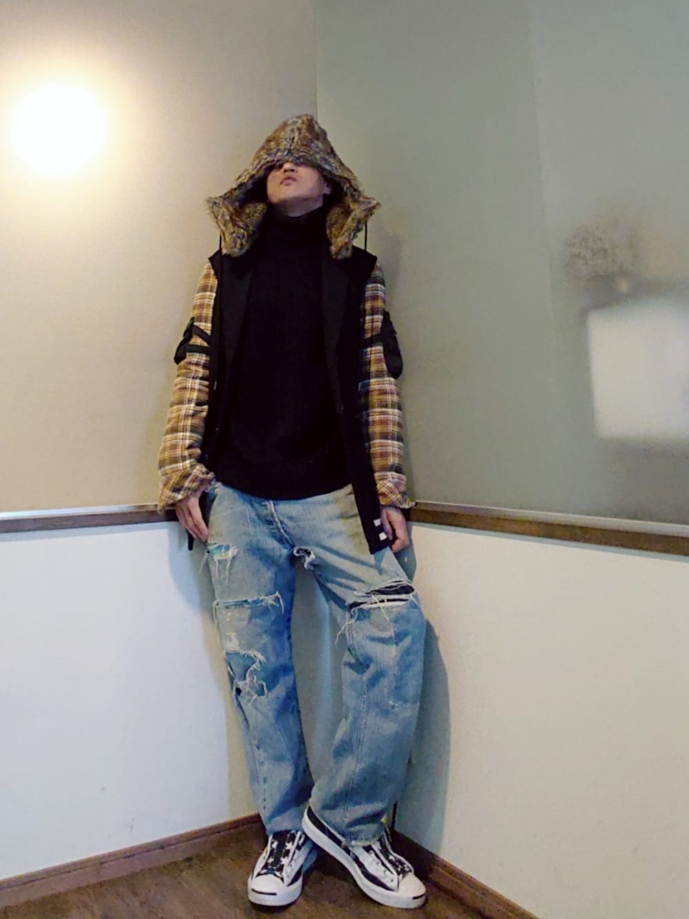 ご覧頂きありがとうございます 沢山のいいね 素敵なフォルダ 貴重なフォロー コメント 心より感謝申し上げます✨ グランジ感漂うコーデ 小窓に別パターン2つ どの感じが好きですか?(全滅の方ごめんなさい💦) フライトキャップだと可愛くなります フードオフはまぁそうなるだろ……(笑) NUMBER (N)INE全盛期のドッキングコートは 袖が中綿ネルシャツにミリタリーポケット 身頃上はタキシードクロスのテーラード 身頃下はスタジャン 独りchaosな逸品このシリーズカッコ良かったなぁ デニムはMR.HOLLYWOOD(現Nハリ)の古着リメイクデニム デザイナーの尾花さんにフィッティング見てもらって選んで貰えた想い出の逸品………にもかかわらず自分であちこち布足してますけど(笑) この二点いまだに着こなせてる気がしないけど 逆に開き直りがグランジ感…… てことにしてください(笑)