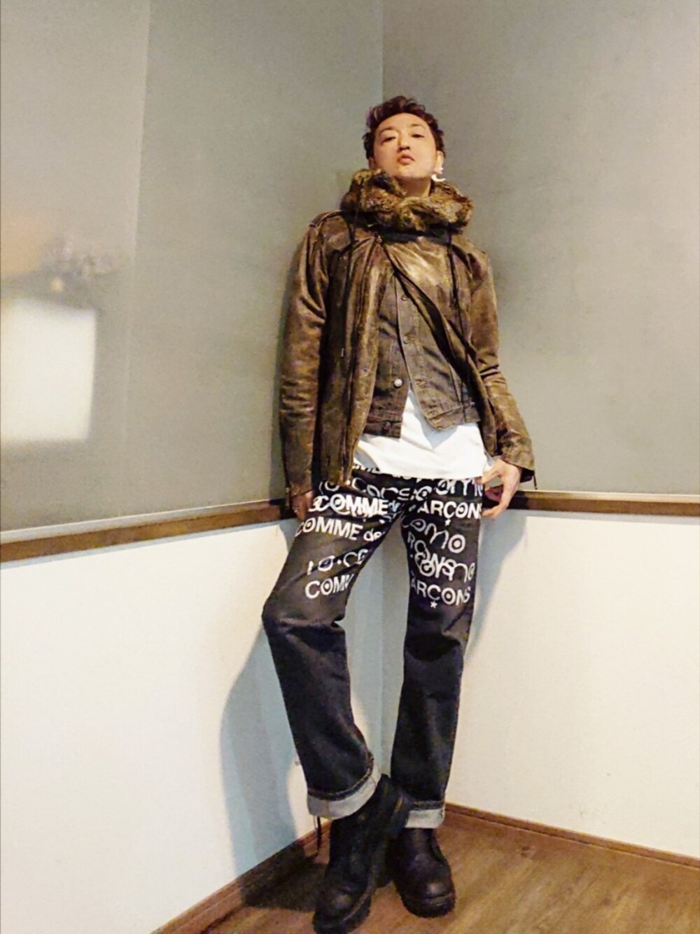 P3のネックウォーマー/スヌード「CASPER JOHN AIVER FUR FOODIE MUF」を使ったコーディネート