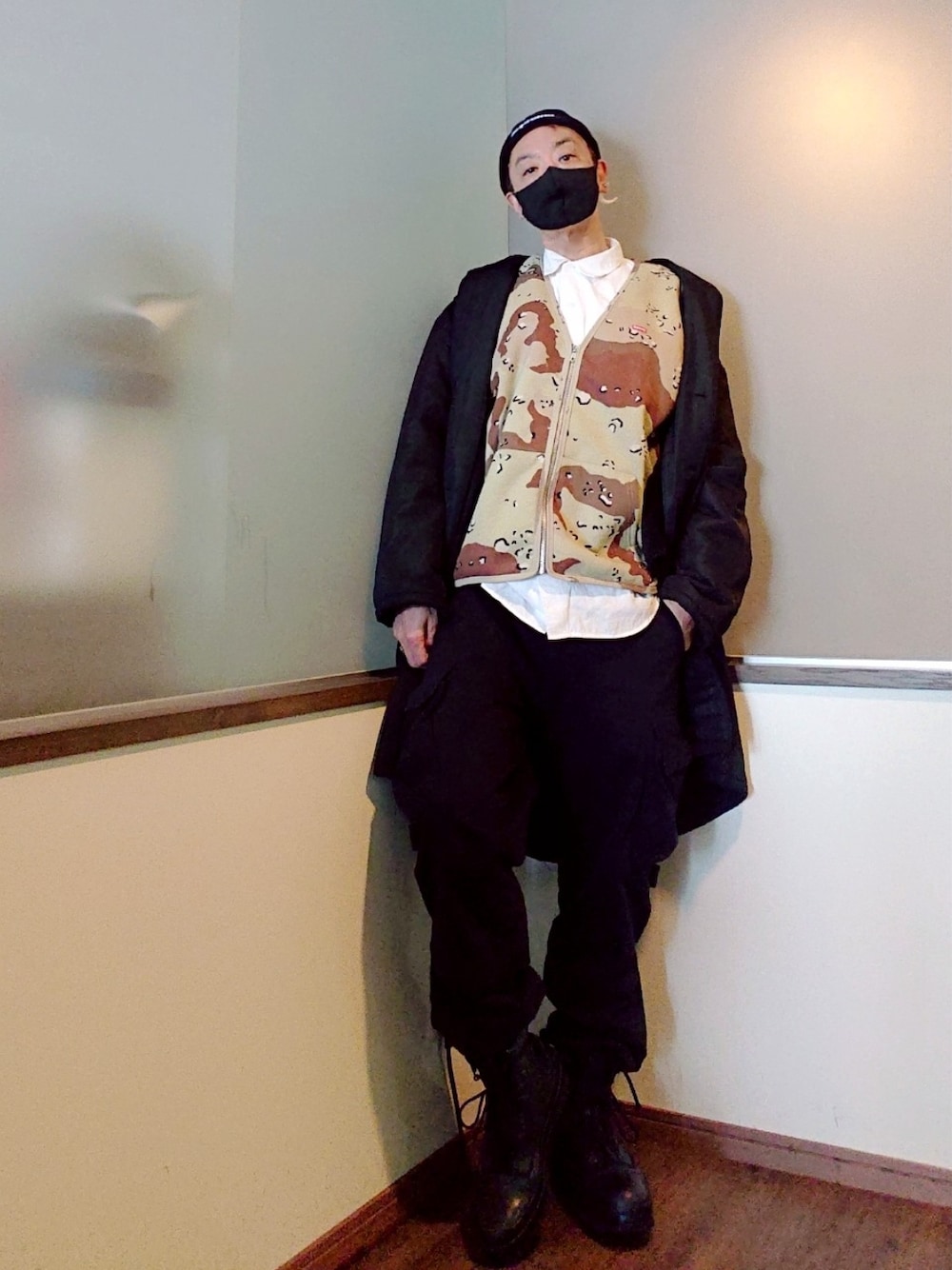 ご覧いただきありがとうございます 沢山のリアクション心より感謝申し上げます✨ モノトーン+カモのストリートコーデ 大人スケータースタイル でちょっとビーターなブラックチョコ……(笑) しかもトラックソールなのは御容赦を(笑)