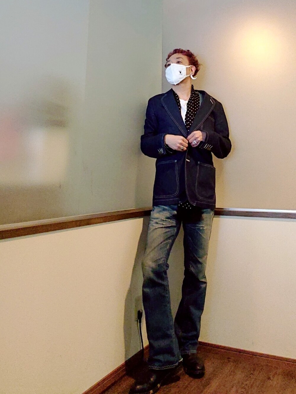 ご覧いただきありがとうございます 沢山のリアクション心より感謝申し上げます✨ デニムのフォーマルスタイル 着崩し感強めるのに古着のヘンリーネックとカーディガンをインナーに ストールとテーラードジャケットと黒のレースアップブーツでフォーマルな印象を 白のアクセサリーが良いポイントになります ※実際は寒いので外ではアウター着用です