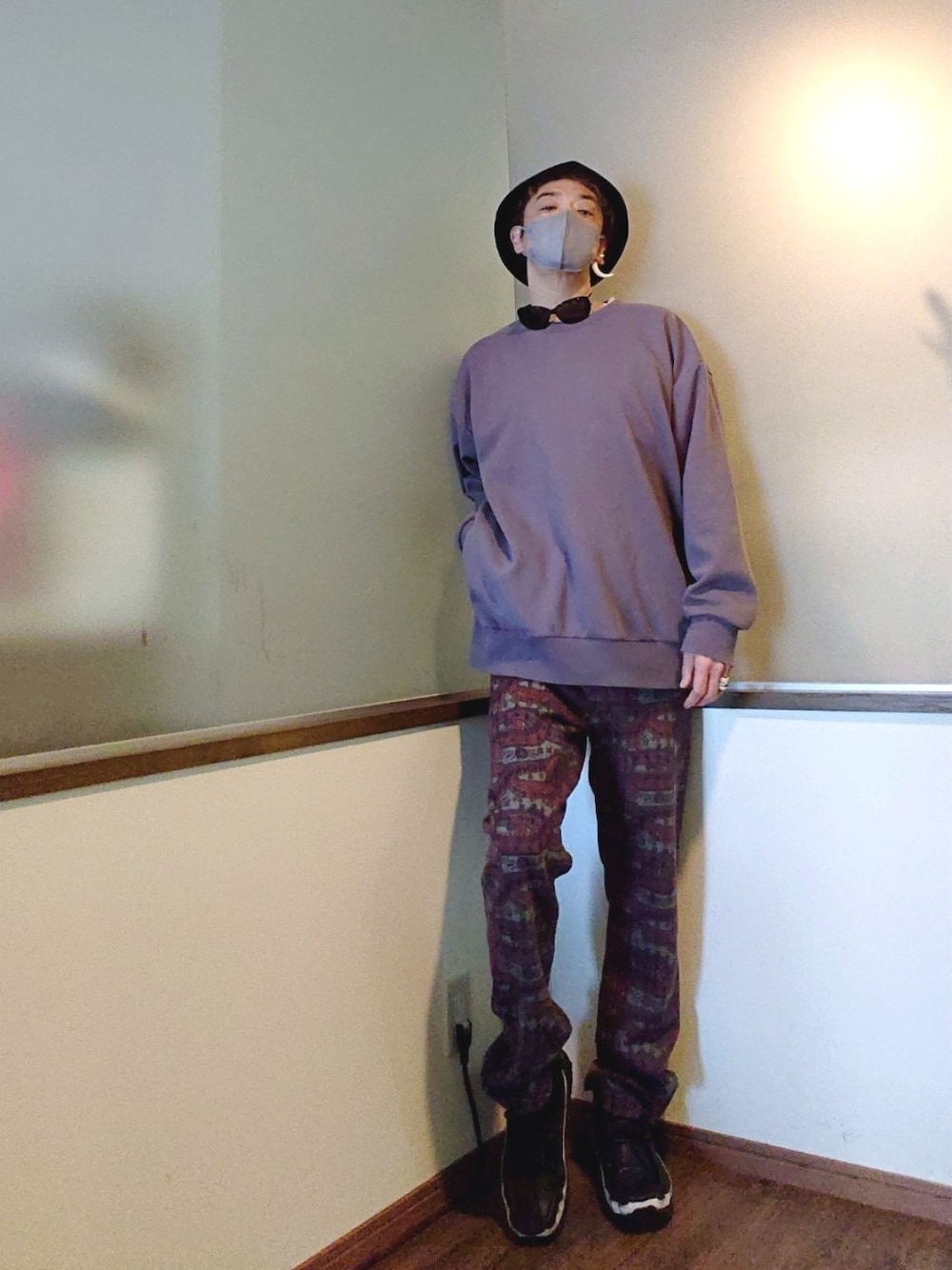 ご覧いただきありがとうございます 沢山のリアクション心より感謝申し上げます✨ 先日のビッグシルエットのスウェットと総柄のパンツのコーデの小物アレンジ 黒の小物に変更することでかなり印象が変わります。 ちょっと夜っぽいかな? 最近の気分はやはり先日の白かな