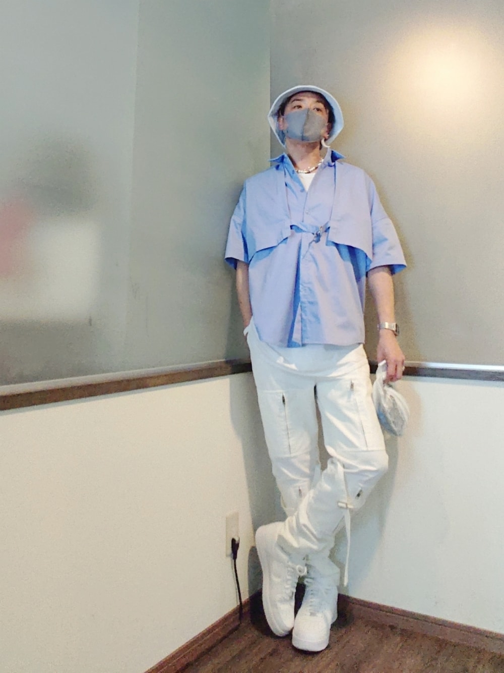 ご覧いただきありがとうございます。 沢山のリアクション心より感謝申し上げます✨ 白とライトブルーの爽やかストリートスタイル。 足下の白×白 ベタだけど好き○