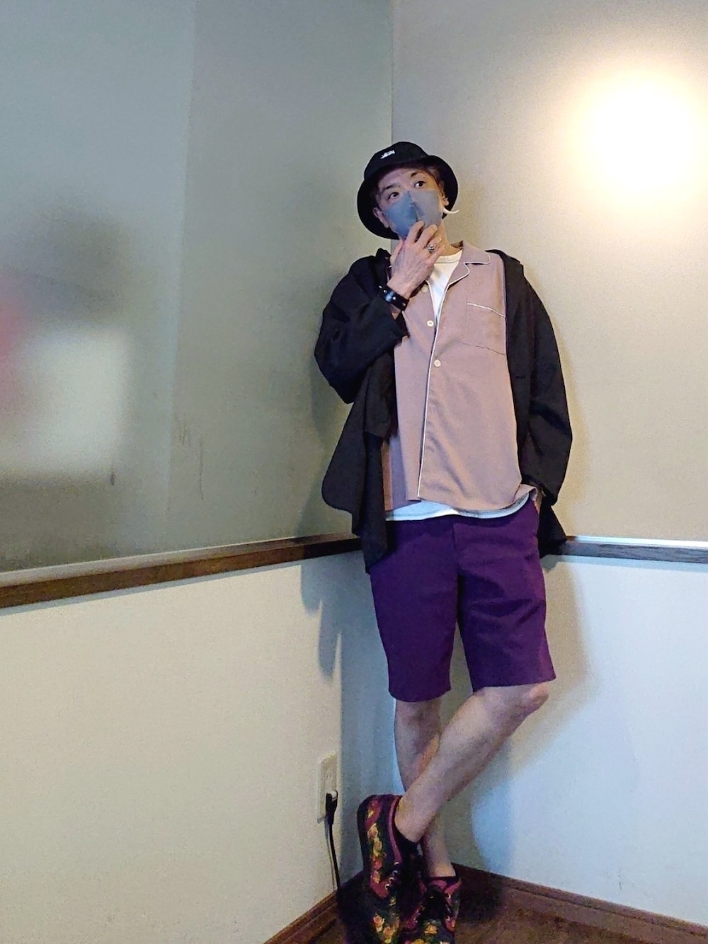 ご覧いただきありがとうございます。 沢山のリアクション心より感謝申し上げます✨ テロンとしたジャケットとオープンカラーのパジャマシャツのストリートコーデ。 ビッグシルエットのジャケット 程よいビッグシルエットのスモークピンクのシャツ 白のポケT パープルのハーフスラックス 華やかなVANS 黒のバケハ ちょっとハデ目だけど好きな感じ♪ このまま海外行くと色味的にヤバいかもな 好きなんだけど色味は でも残念ながらノーマルですw