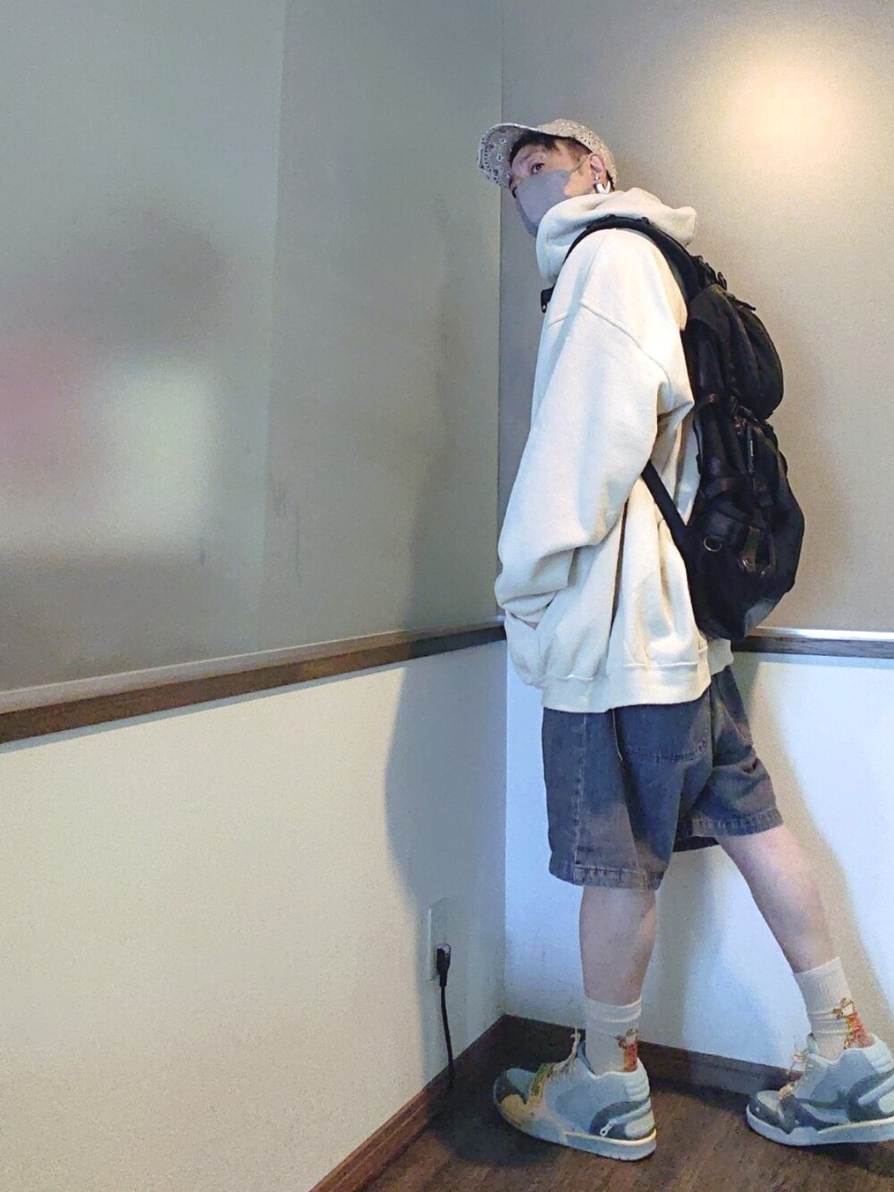 ご覧いただきありがとうございます。 沢山のリアクション心より感謝申し上げます✨ パーカーとデニムのハーフパンツのシンプルなビッグシルエットコーデ ※ソックスは色違いです。