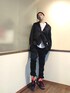 ご覧いただきありがとうございます。 沢山のリアクション心より感謝申し上げます✨ noisemakerのテーラードジャケットと ジャージボンテージパンツの セットアップ風コーデ。 黒のセットアップをストリート風に アレンジ ちょっと こなれた感じで良い。 足元は派手目のスニーカーが気分。(出かける直前までAF-1と迷ってたのは内緒w) ウケの良いコーデでした😊