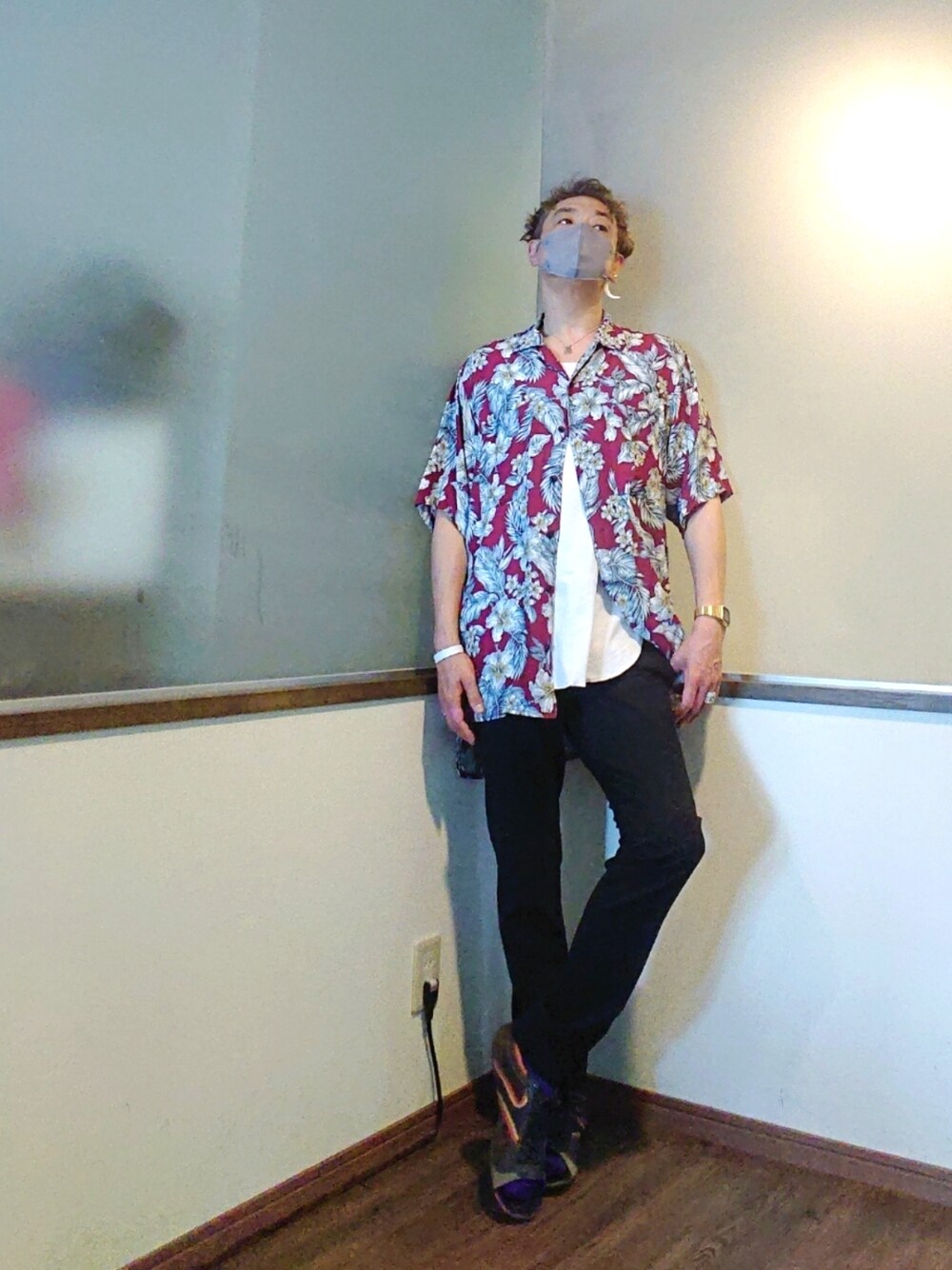 ご覧いただきありがとうございます。 沢山のリアクション心より感謝申し上げます✨ ビッグシルエットのアロハシャツコーデ。 タイトなスラックスでちょっと大人っぽく。 足元はオープントゥーのドレスシューズで遊びを。 今日店の前でお客さん待ってたら 「絵になるねぇ」って言われてちょっと嬉しかった/// お世辞でも嬉しいものです(笑)
