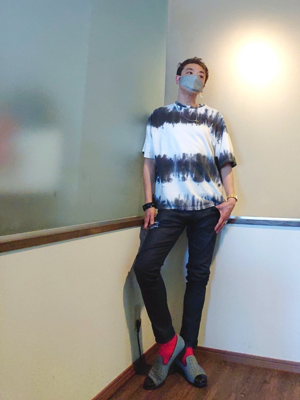 ご覧いただきありがとうございます。 沢山のリアクション心より感謝申し上げます✨ ビッグシルエットタイダイボーダーTのシンプルコーデ。 リジットスキニーデニムとスタッズ付きデニム×エナメルドレスシューズで大人感。