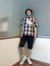 ご覧いただきありがとうございます・ 沢山のリアクション心より感謝申し上げます✨ ビッグシルエットでチェックのTシャツ とハーフパンツのシンプルストリートスタイル。 モノトーンでもちょっとインパクト出る感じが○
