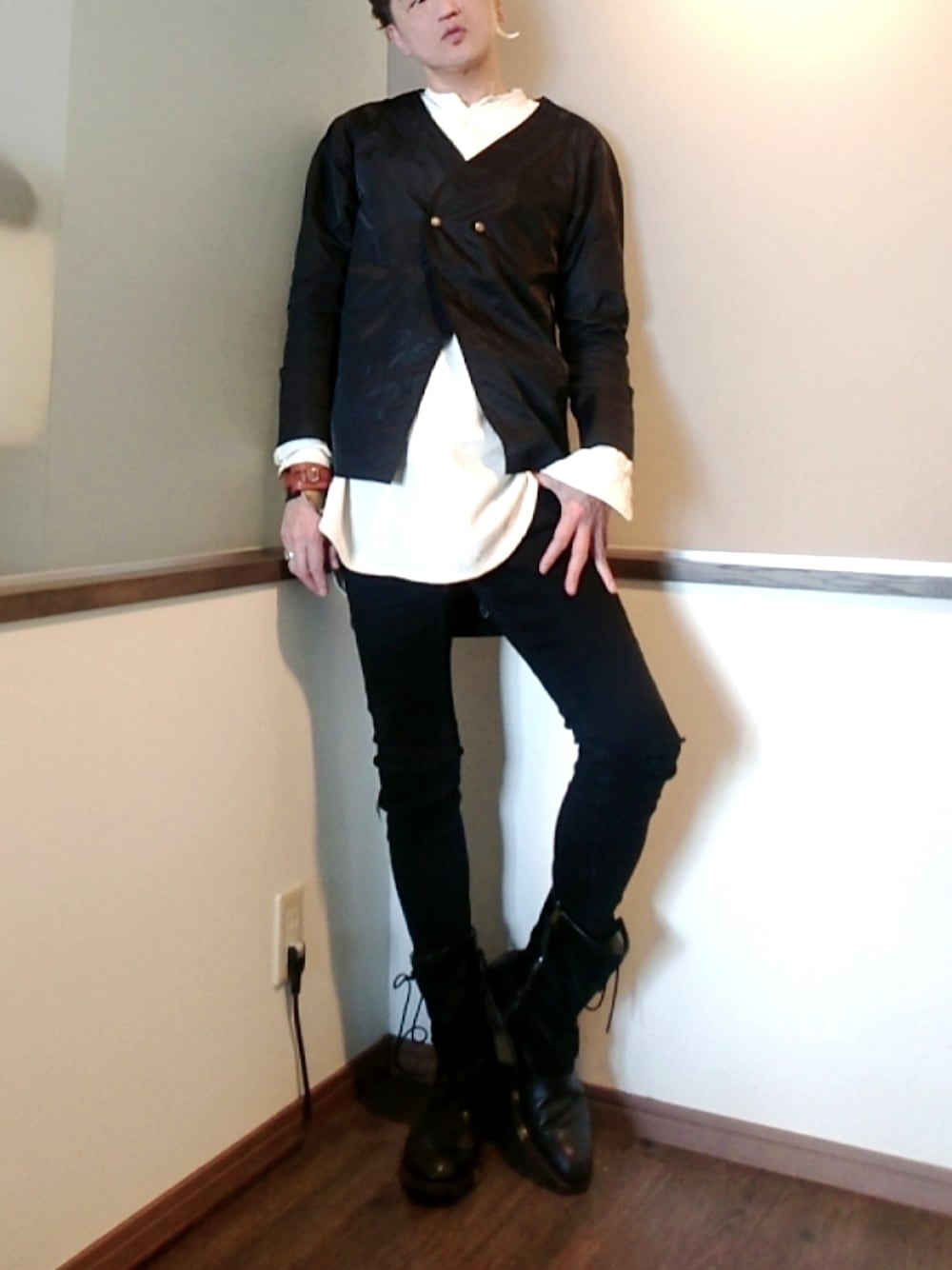 ご覧いただきありがとうございます。 沢山のリアクション心より感謝申し上げます。 ケンさん主催の“パンクフェス”③ ビッグシルエットのプルオーバー ナイロンの襟無しジャケット 黒スキニー いかしたブーツ✨ マルジェラのアクセもポイントに♪ シンプルだけどなぁーんかパンク 良い◎