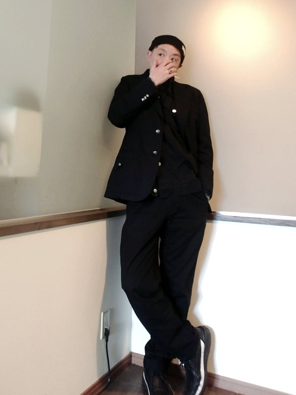 ご覧いただきありがとうございます。 沢山のリアクション心より感謝申し上げます。 コットンのシャツジャケットとパンツのセットアップ風コーデ+テーラードジャケット。 テーラード シャツ 共にシルバーのボタンが良い感じ。 足元はモカシンブーツで程よくリラックス。 ニットキャップをアクセントに。 (ジャケットはネイビー)