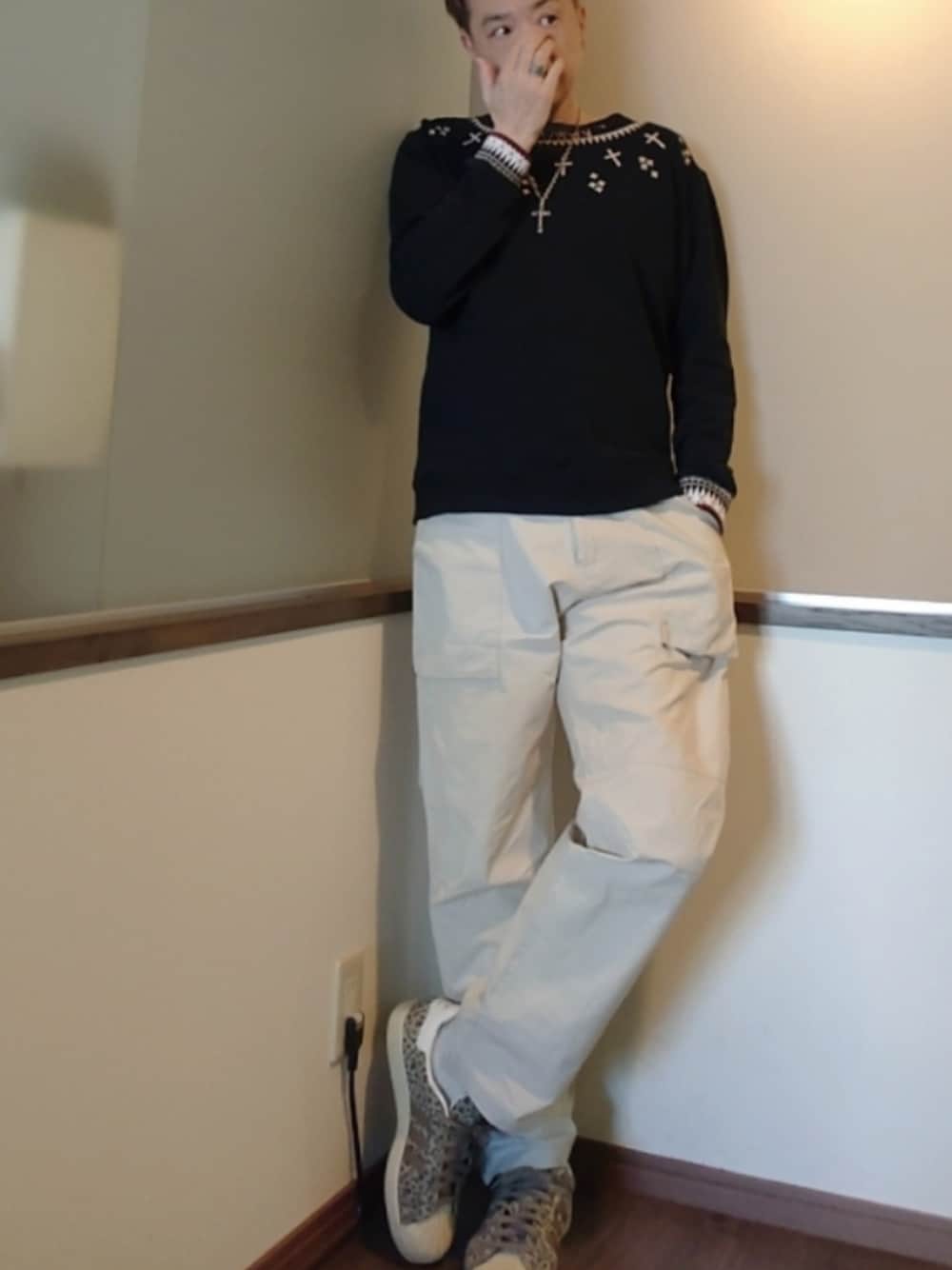ご覧いただきありがとうございます。 沢山のリアクション心より感謝申し上げます。 先日古着ディグりで一目惚れた“grandcyanion”のスウェットコーデ。 勿論状態ほぼ新品 首回りのプリントと袖口のプリント で地味にこのサイズ感やや薄手の生地…… たまらんです🥰 silverのロザリオを重ねて パンツはクロスのプリントに近いカラーのオフホワイト。 足元はレオパのSUPERSTARで〆 大人ストリートコーデ。 よき♪