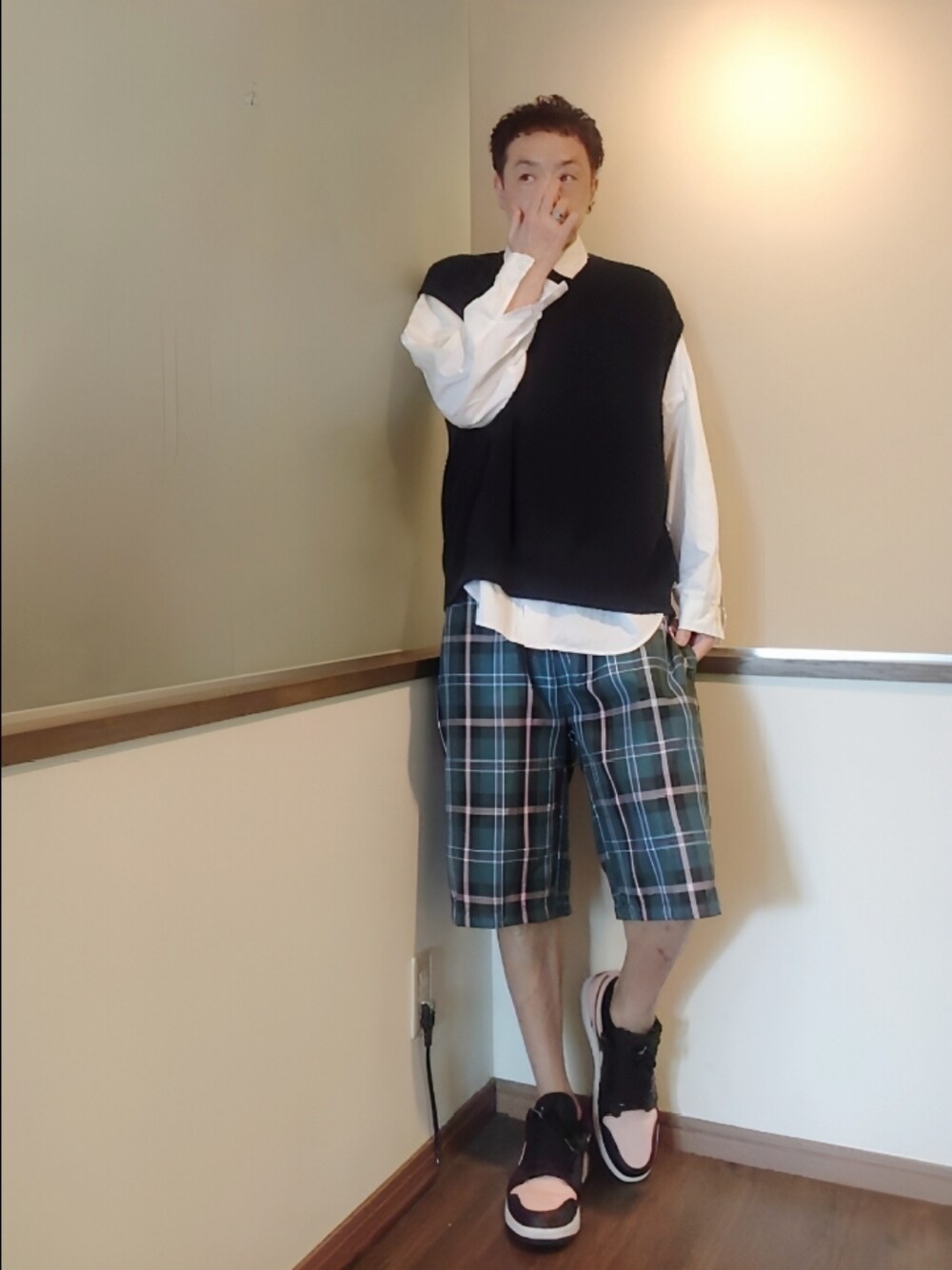 ご覧いただきありがとうございます。 沢山のリアクション心より感謝申し上げます。 白シャツ ニットベスト チェックハーフパンツ AIR JORDAN(不人気だけど好きなカラー) シンプルな白シャツストリート。 袖のボタンを閉め忘れがちな仕事中(笑)