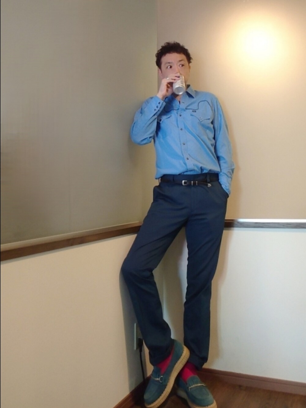 ご覧いただきありがとうございます。 沢山のリアクション心より感謝申し上げます。 オールフリーを朝から飲んでそんなわけないのに酔っ払ったコーデ(笑) 先日購入した古着のウェスタンシャツは画像に反映してませんがきれいなブルーと細かな柄が又ステキ。 古着とワコマリアの相性ってやっぱり良いですよね♪ 足元はGEORGE COX(APEコラボ)でrockな感じ。 赤のソックスも大事。 にしても オールフリーって酔いますよね(笑)