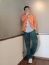 ご覧いただきありがとうございます。 沢山のリアクション心より感謝申し上げます。 オレンジのカーディガン 白×グリーンのストライプシャツ グリーンのコーデュロイパンツ 白スニーカー。 ……果物か?(笑)