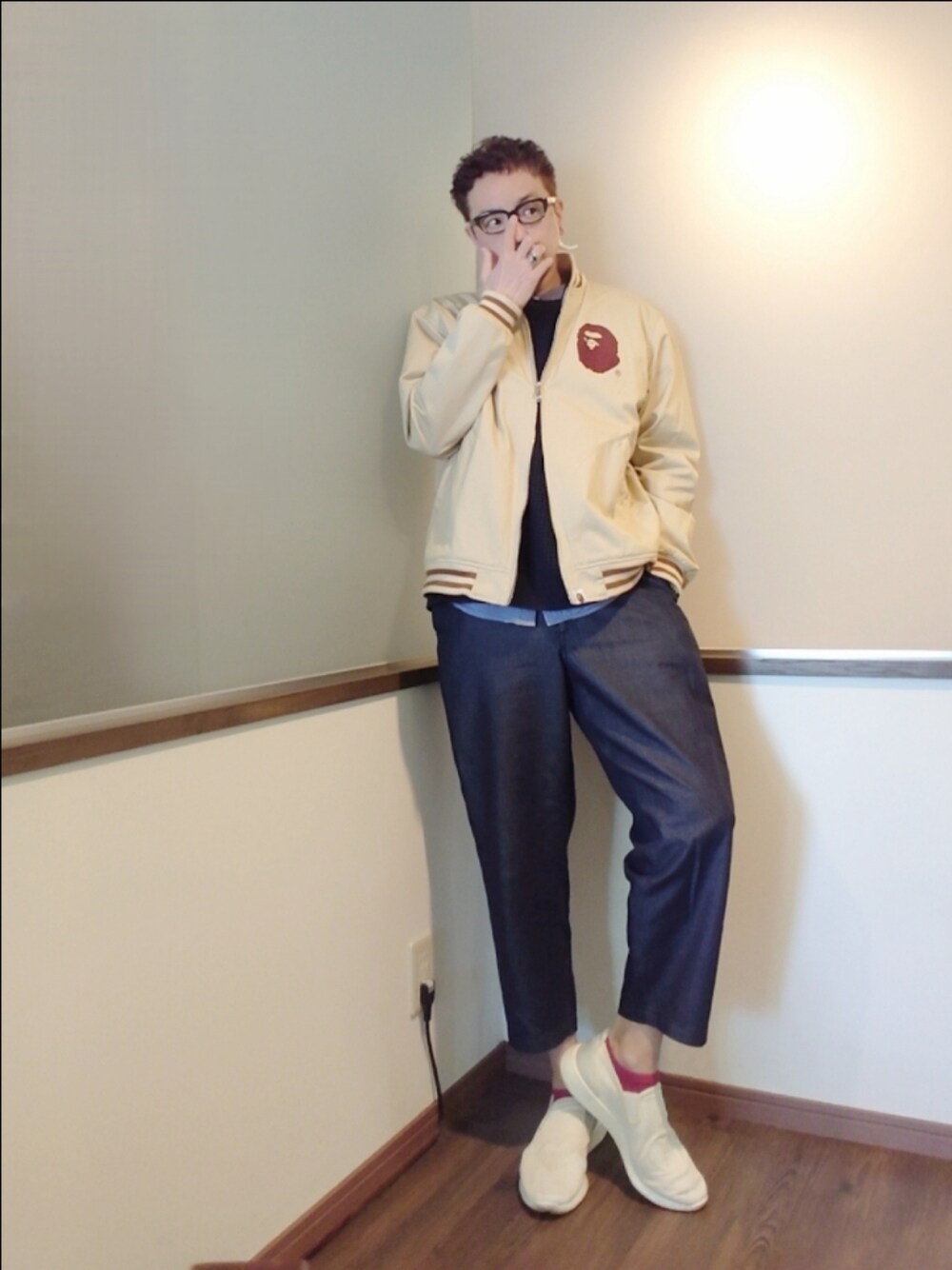 ご覧いただきありがとうございます。 沢山のリアクション心より感謝申し上げます。 タンスの奥底から商札付いた新品のパンツ…… 確かに買った気がするw しかも穿いてみたら“これ良いじゃん?” という事でこんなコーデ。 NIGO氏居た頃のエイプのブルゾンはこの襟の高さとかディテールが古着好きの心をくすぐりまくります。やっぱり天才なんだな🥰 こういうアメカジはやっぱり好き◎