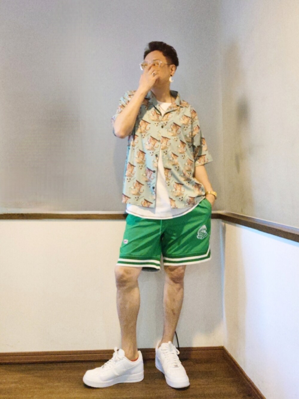 ご覧いただきありがとうございます。 沢山のリアクション心より感謝申し上げます。 スポーツミックスなアロハコーデ。 三枚目………目を瞑ってしまいました(笑)