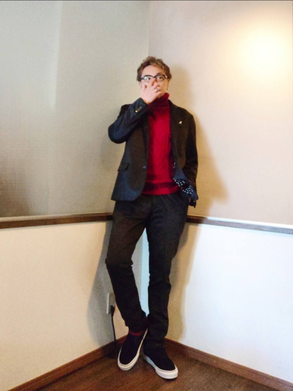 ご覧いただきありがとうございます。 沢山のリアクション心より感謝申し上げます。 ジャケット✕タートルネック✕Dickiesのシンプルスタイル。 赤のニットをアクセントに 赤のソックスとアシンメトリのスニーカーで足元に遊びを持たせて。