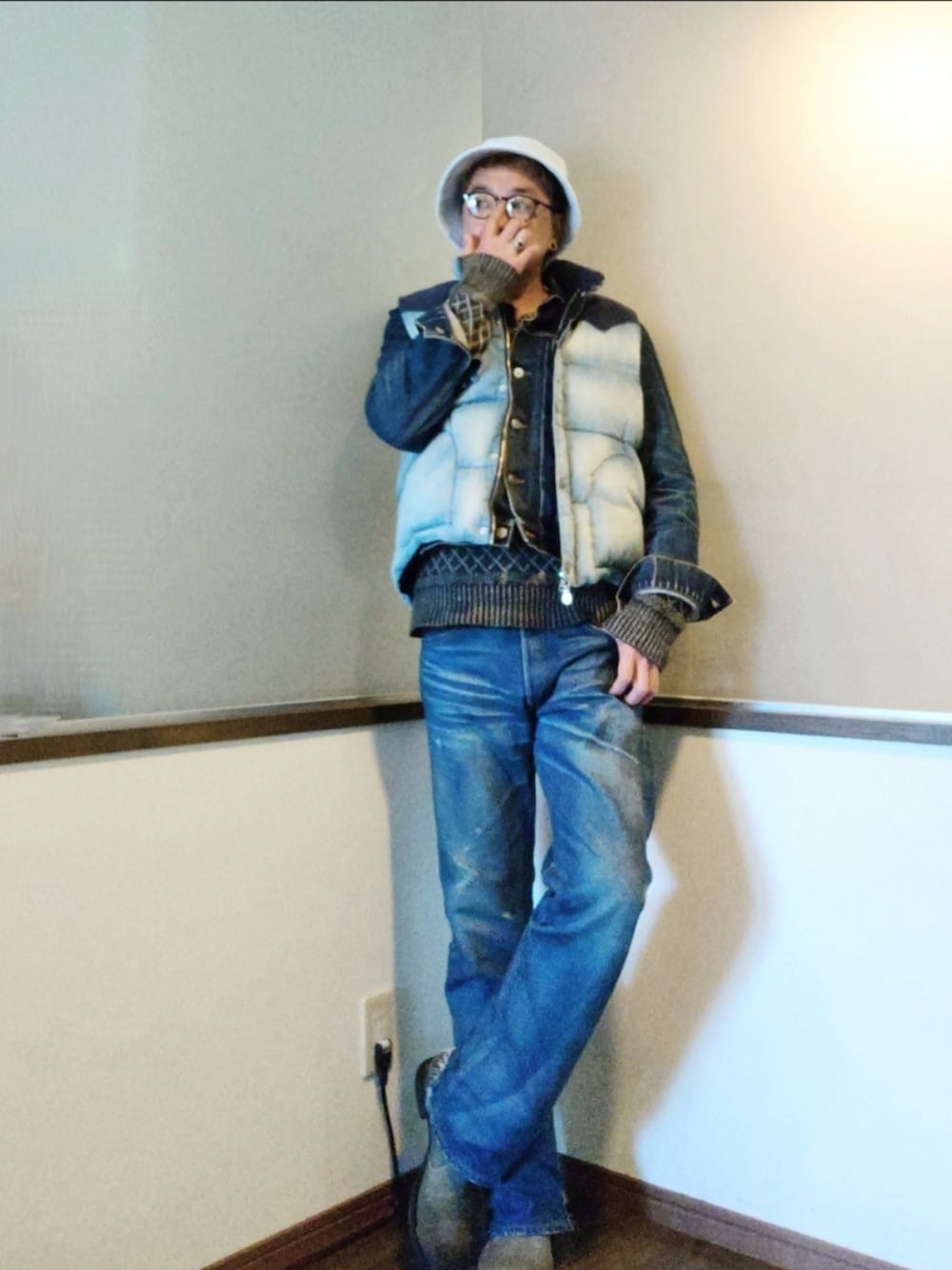 ご覧いただきありがとうございます。 沢山のリアクション心より感謝申し上げます。 先日のテーラードジャケットスタイルの着回しコーデ。 バケハとデニムジャケットとダウンベストと 足元はブーツに変更(アイウェアも) やっぱ501って凄いと改めて納得(笑)