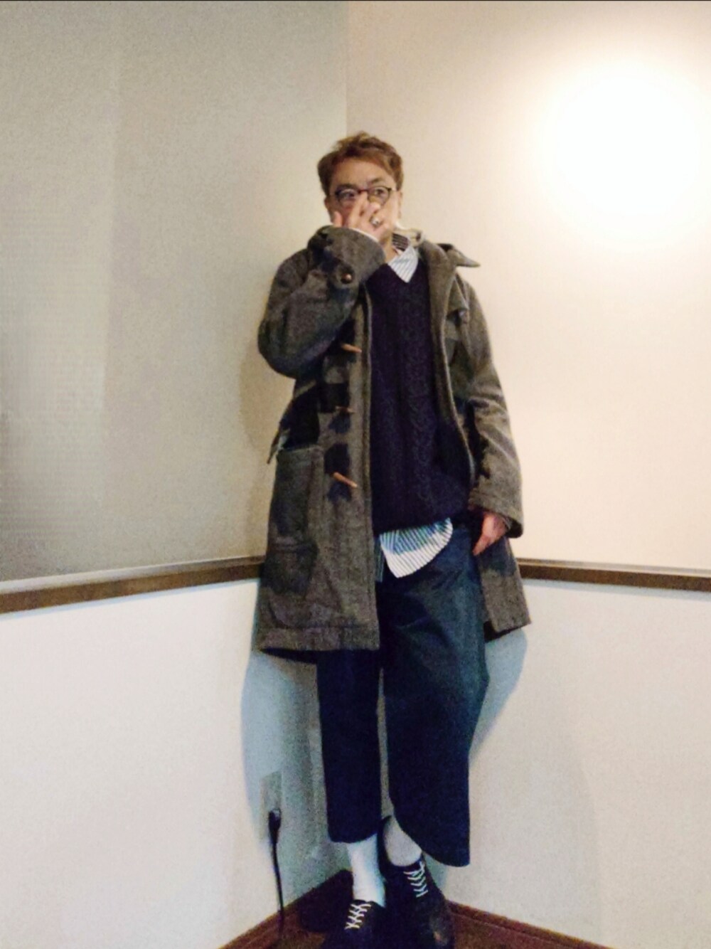 ご覧いただきありがとうございます。 沢山のリアクション心より感謝申し上げます。 ダッフルコート✕ビッグシルエットニット✕オーバーサイズのストライプシャツ✕アシンメトリーのDickies✕Dr.Martens スクールライクなレイヤードコーデ。