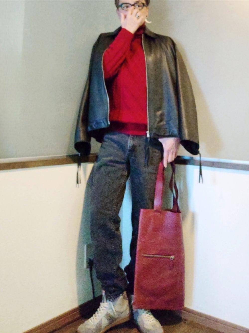 ご覧いただきありがとうございます。 沢山のリアクション心より感謝申し上げます。 ビッグシルエットのレザージャケット✕タートルネックニット✕古着Levi's✕スニーカー 大人カジュアルコーデ。 550は程よいリラックス感がありながらテーパされている感じが◎ マルジェラのジャーマントレーナーは色合いとミッドカットが◎