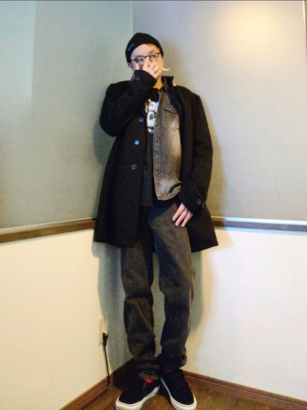 ご覧いただきありがとうございます。 沢山のリアクション心より感謝申し上げます。 チェスターコート✕デニムシャツ✕ロンT✕デニムパンツ✕アシメのVANS デニムオンデニムのストリートカジュアルにチェスターコートで大人なストリートスタイル。 こなれ感と無骨さは、やっぱり黒デニム。