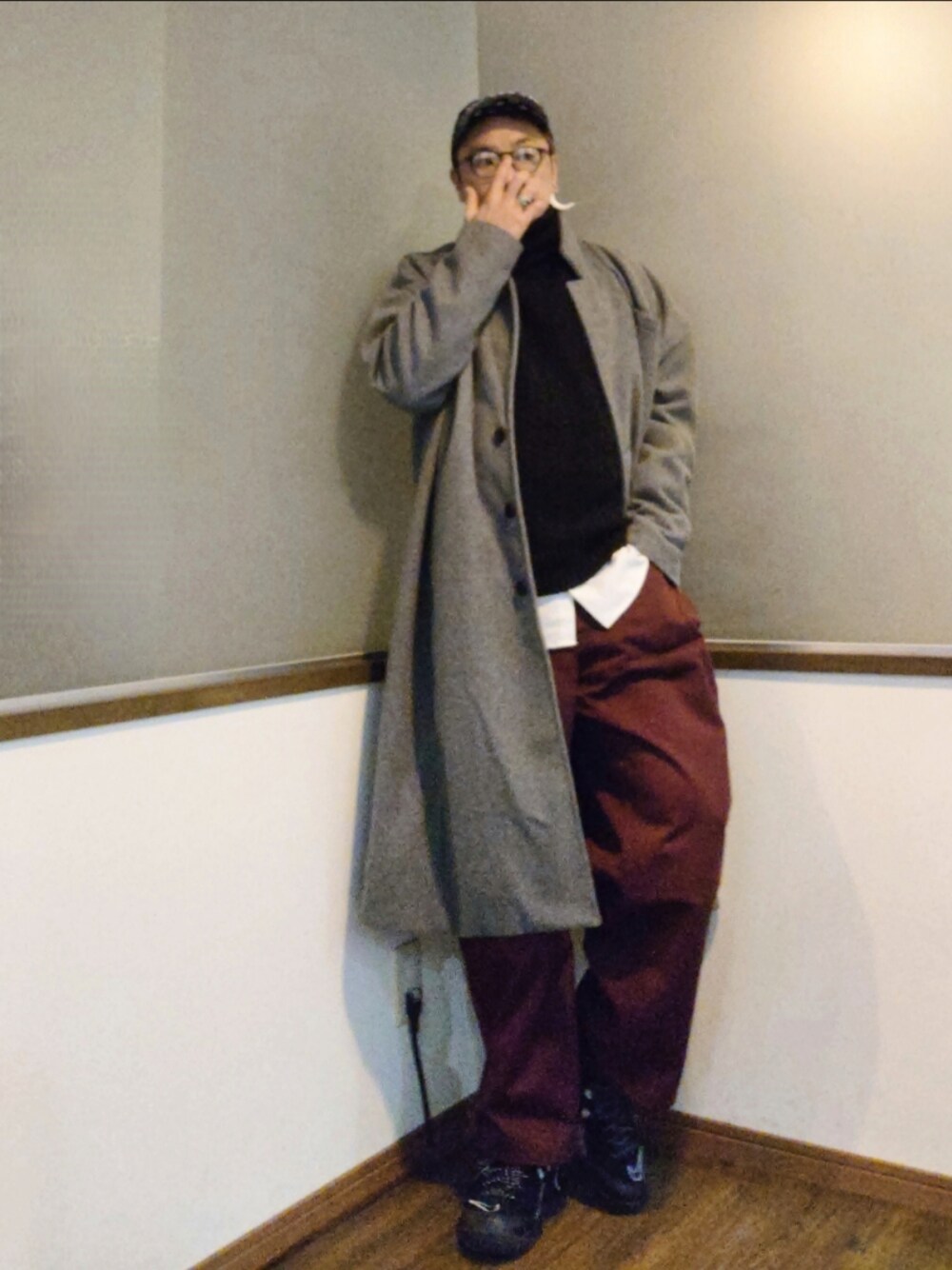 ご覧いただきありがとうございます。 沢山のリアクション心より感謝申し上げます。 バンダナ柄のキャップと同柄のキックスをロングコートに合わせた大人なストリートコーデ。 全体にビッグシルエットでまとめつつ キャップで頭を小さく 小顔バランスと縦長シルエットが◎ 白シャツのレイヤードも◎