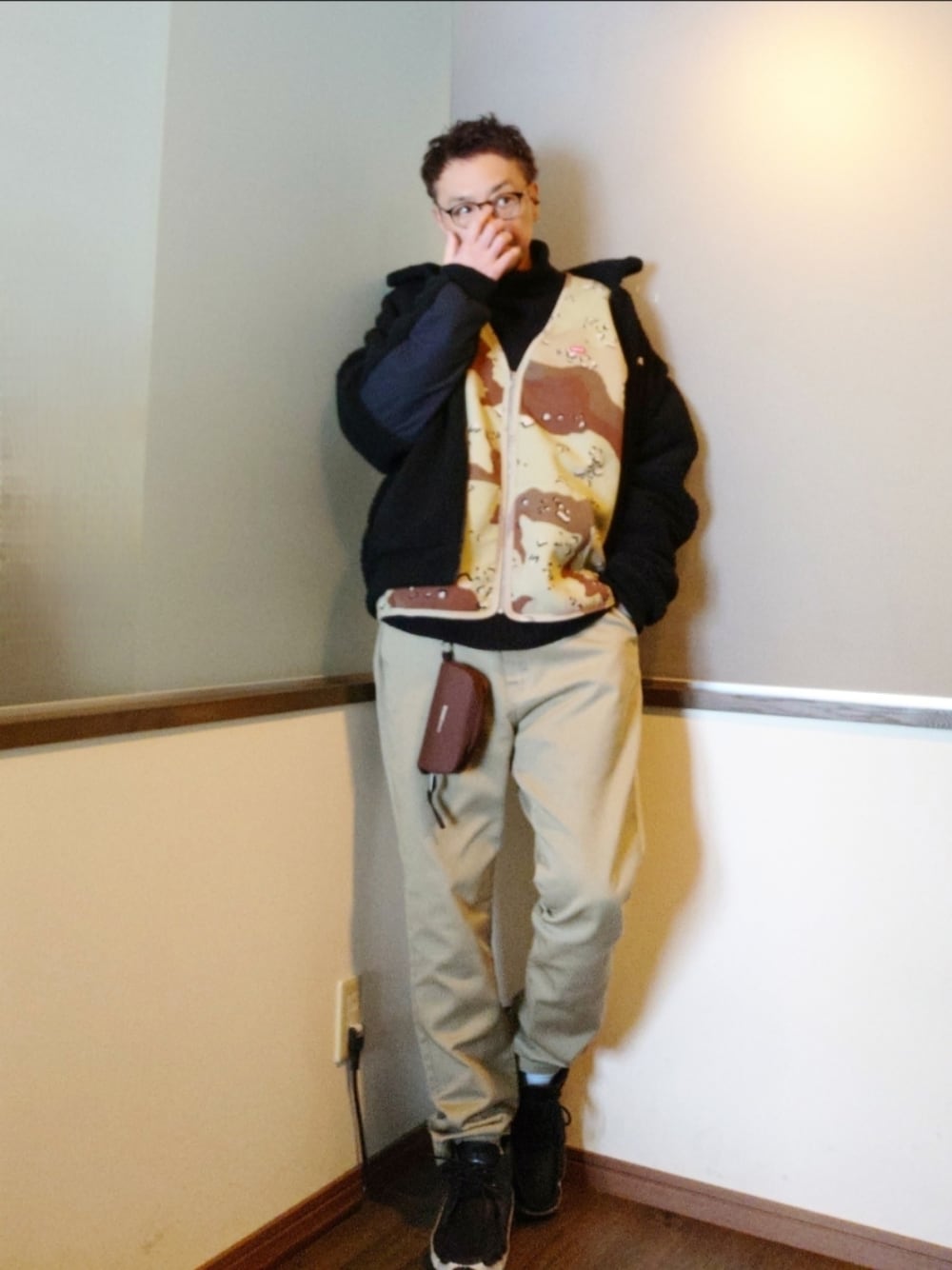 ご覧いただきありがとうございます。 沢山のリアクション心より感謝申し上げます。 ボアジャケット×スウェットベスト×タートルネック×Dickies×モカシンブーツ ゆったりコーデ stussyのglasscaseをアクセントに。