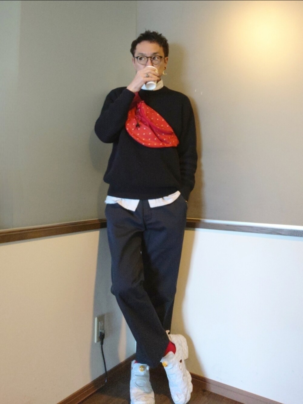 P3のニット/セーター「エクストラファインメリノクルーネックセーター(長袖)」を使ったコーディネート