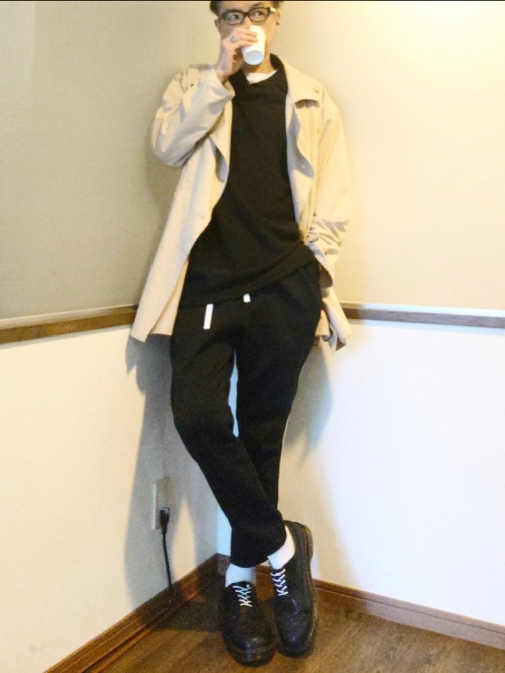 ご覧いただきありがとうございます。 沢山のリアクション心より感謝申し上げます。 ジャージ素材でビッグシルエットのスキッパーと トラックパンツにビッグシルエットのトレンチのコーデ。 足元はレザーシューズで程よい大人感。