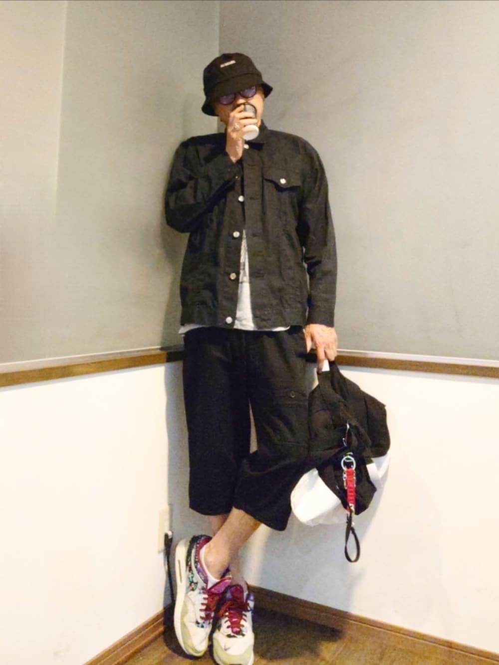 デニムジャケット風なコットンシャツジャケットの大人カジュアル。 パンツはCycle仕様の六分(?)丈 足元にアクセント。