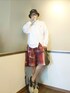 チェックのセットアップ×白シャツ ジャケットは腰巻き 足元は気分。