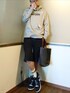 フーディー×ハーフパンツ×ラインソックス×ハイカットスニーカーは秋の定番的スタイル。 ネイビーで纏めて白シャツを差すとちょいスクールテイストで下品にならないのが好き。