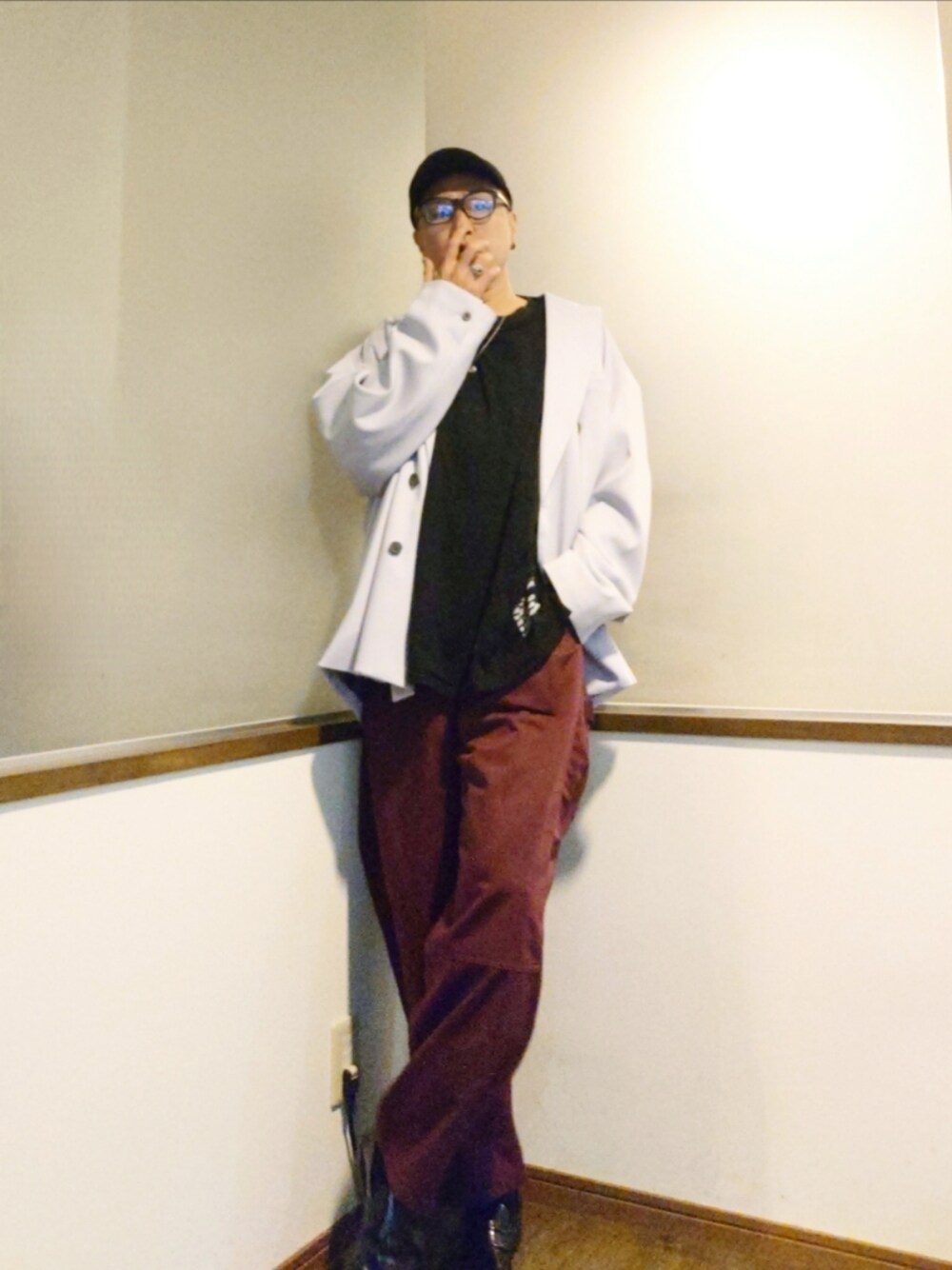 秋のジャケットスタイル。 リラックス感のあるジャケットスタイルはダラっと一人飲みに最適。 口曲がってます(笑)