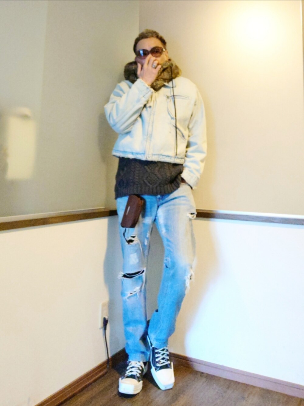 フェイクファー×デニムオンデニムの大人カジュアル。 個人的に好きな感じ。