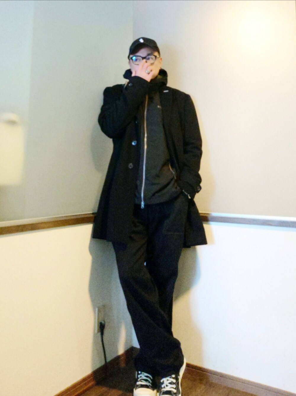 冬のレイヤードスタイル。 インナーはタートルネックニットで暖かに 着膨れ隠しは黒かなw 何かつまらないスタイリングでごめんなさい。