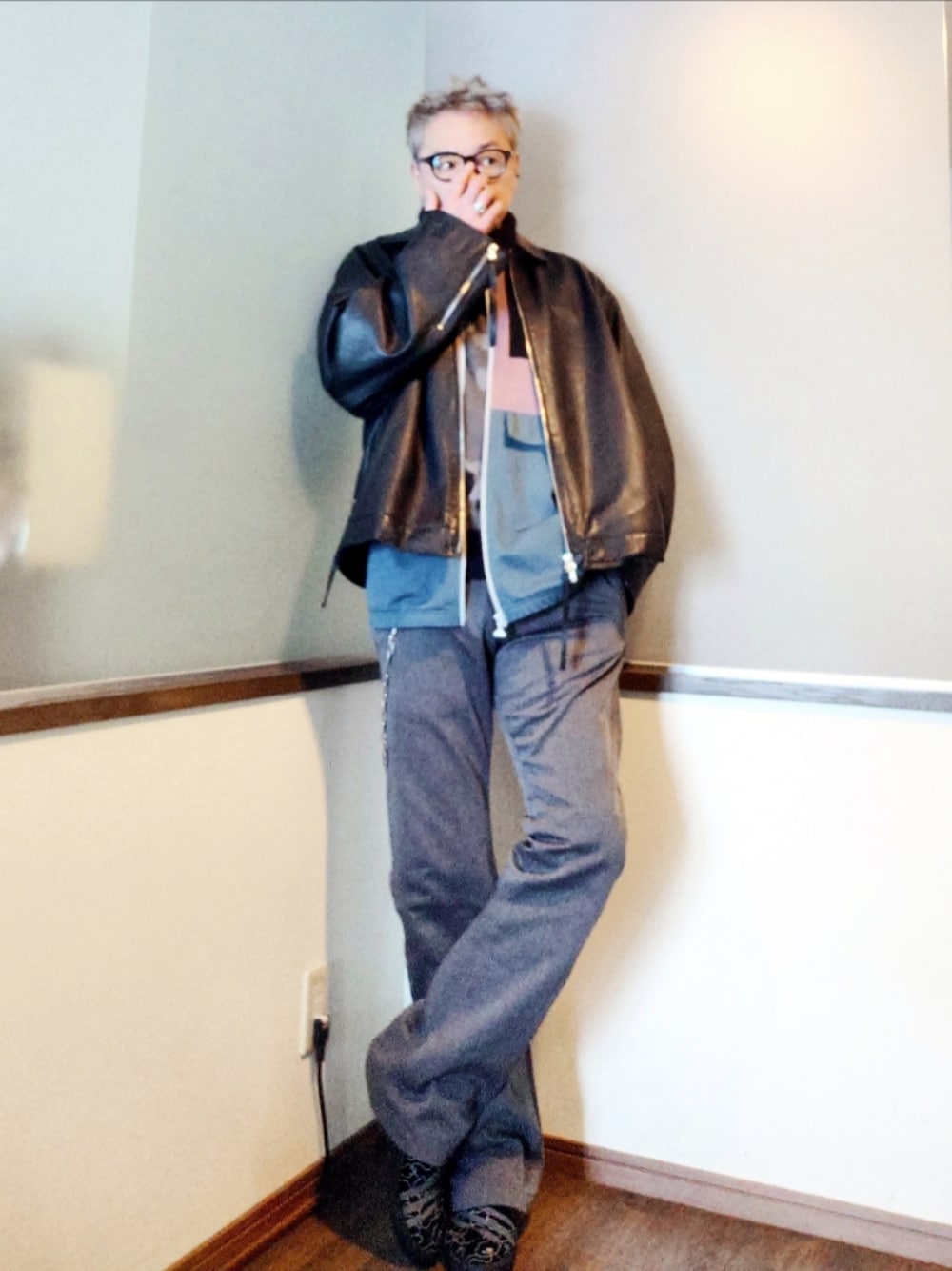 《ユニセックスアイテム》ラムレザープライムオーバー襟付きシングルライダースジャケット【MAISON SPECIAL/メゾンスペシャル】
