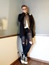 デニムオンデニムのモノトーンコーデ。